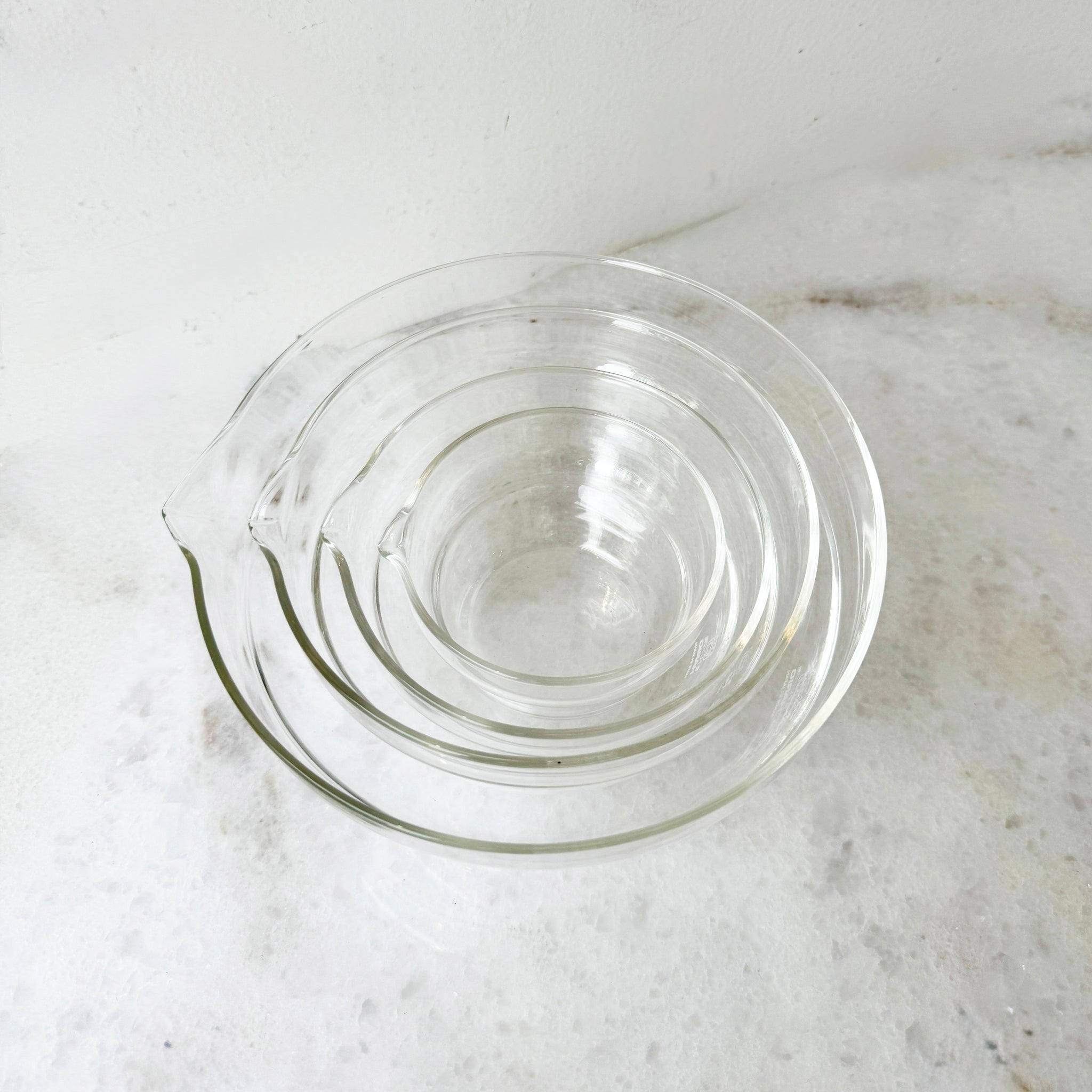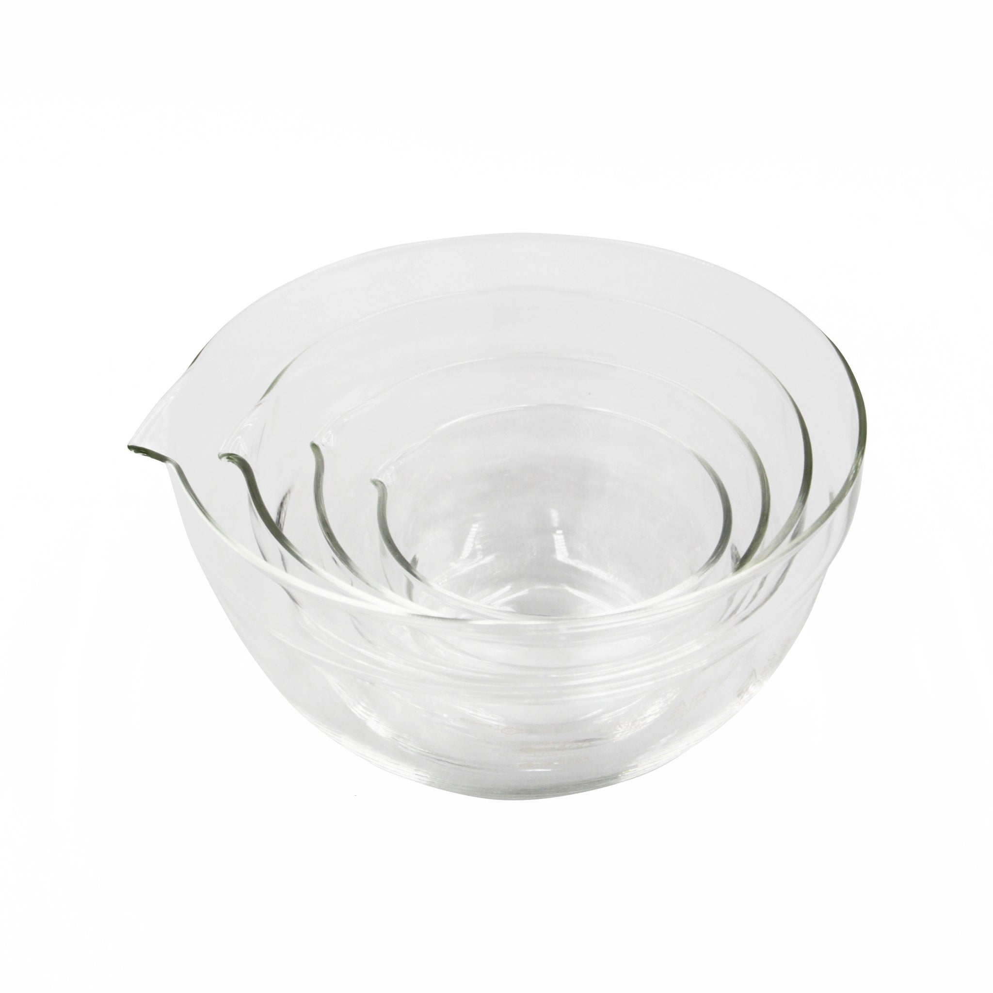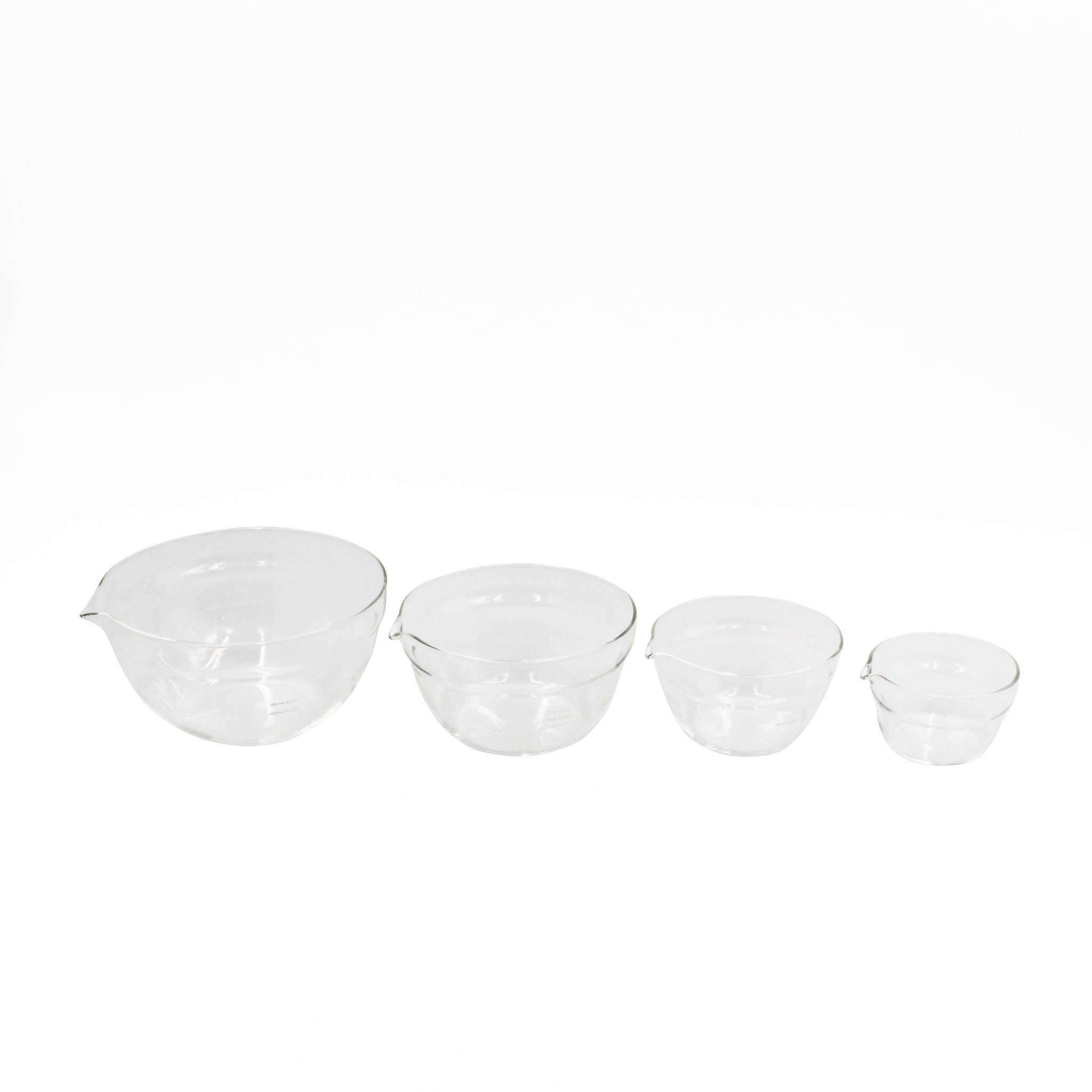 This versatile set of four nesting bowls is made from durable heat-resistant HARIO Glass and is designed for easy mixing, pouring, and serving. Each bowl features a side spout for precise pouring without drips. The four sizes (100 ml, 200 ml, 400 ml, and 800 ml) cover a wide range of kitchen tasks—from whisking a small sauce to mixing batter—while the transparent design makes it easy to monitor your ingredients. Compact enough to nest for storage, these bowls are also cute enough to bring straight to the table for serving sauces, condiments, or small side dishes.