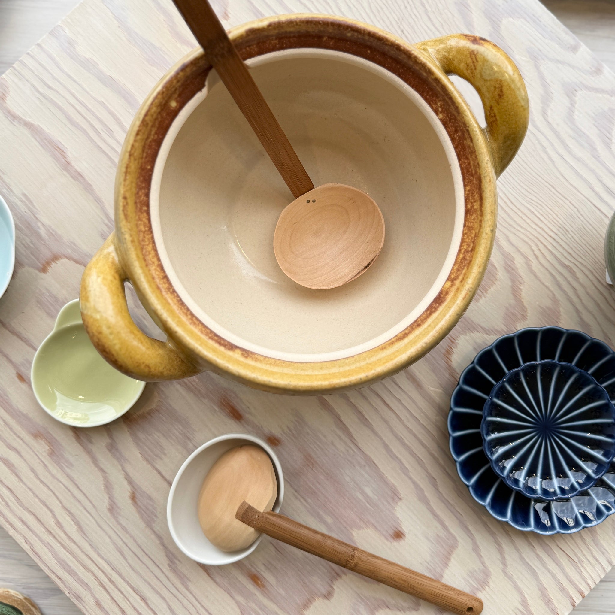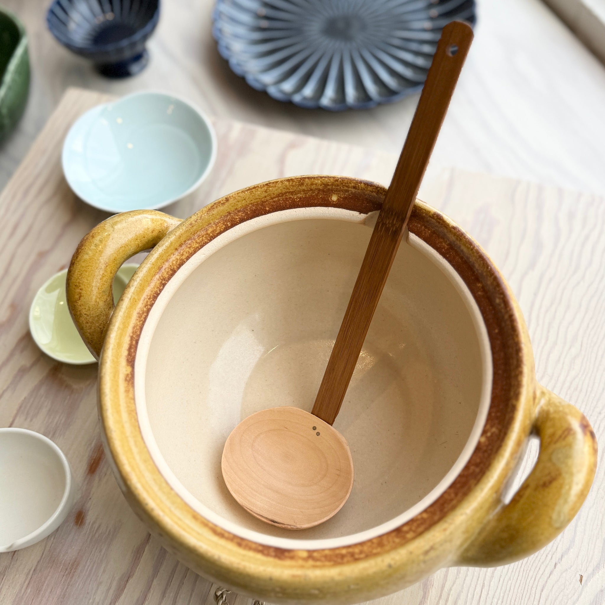 Available in two sizes; the small size is ideal for small donabe or bowl, doubling as a renge spoon, while the large size is ideal for medium to large size donabe. The ladle's handle has a hole for hanging for easy storing.