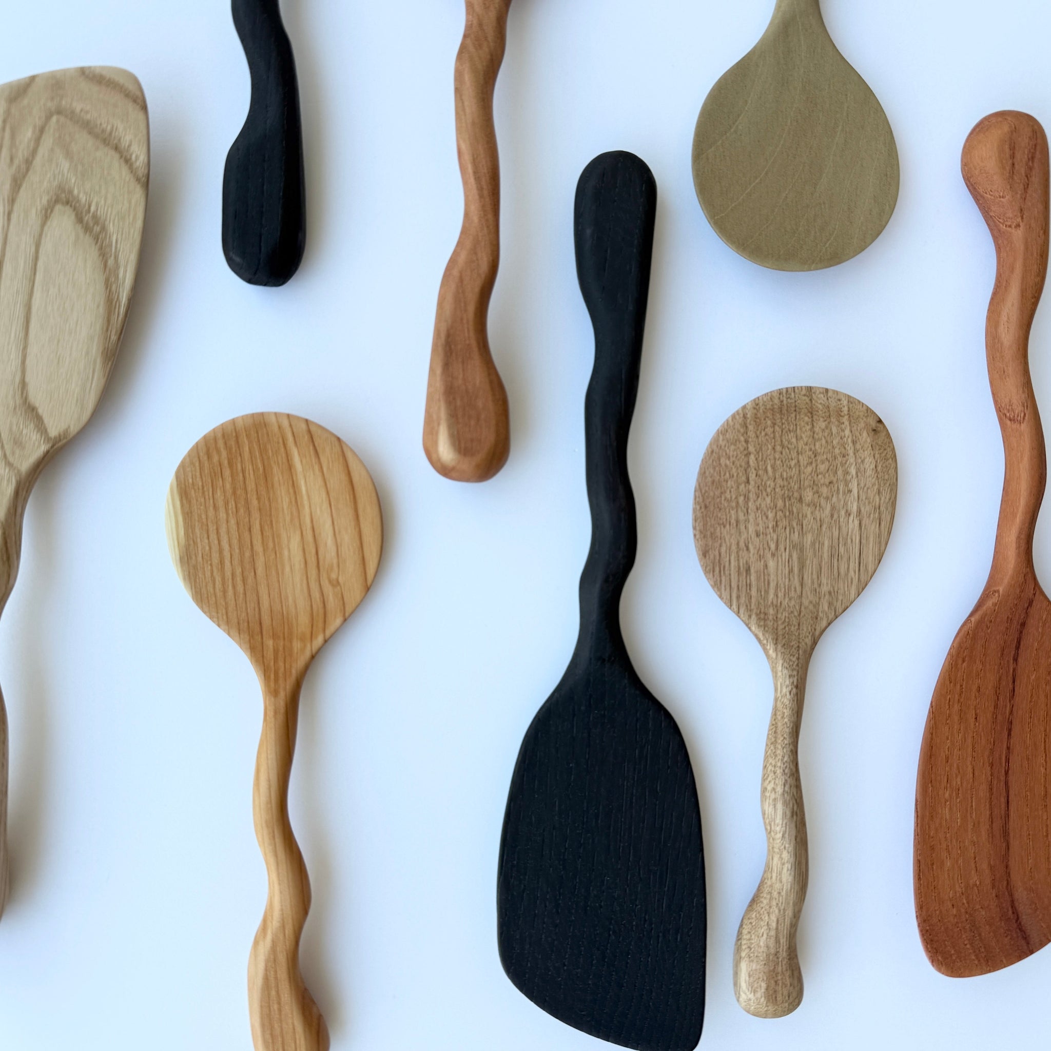 Kaneko-san lives close to nature and works independently. Prior to becoming independent, he built his career by making custom furniture to order. Today, he focuses on smaller wooden tools for everyday use—spatulas, rice paddles, spoons, cutting boards, clocks, and more. His background in furniture making is reflected in the careful shaping, balance, and durability of each piece.